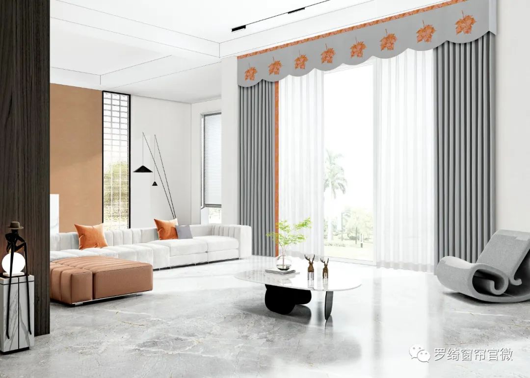 帘头上枫叶的刻画,栩栩如生,为空间增添了艺术魅力,也更显优雅。枫叶寓意着坚毅的精神、鸿运吉祥、轮回的沉淀等寓意。