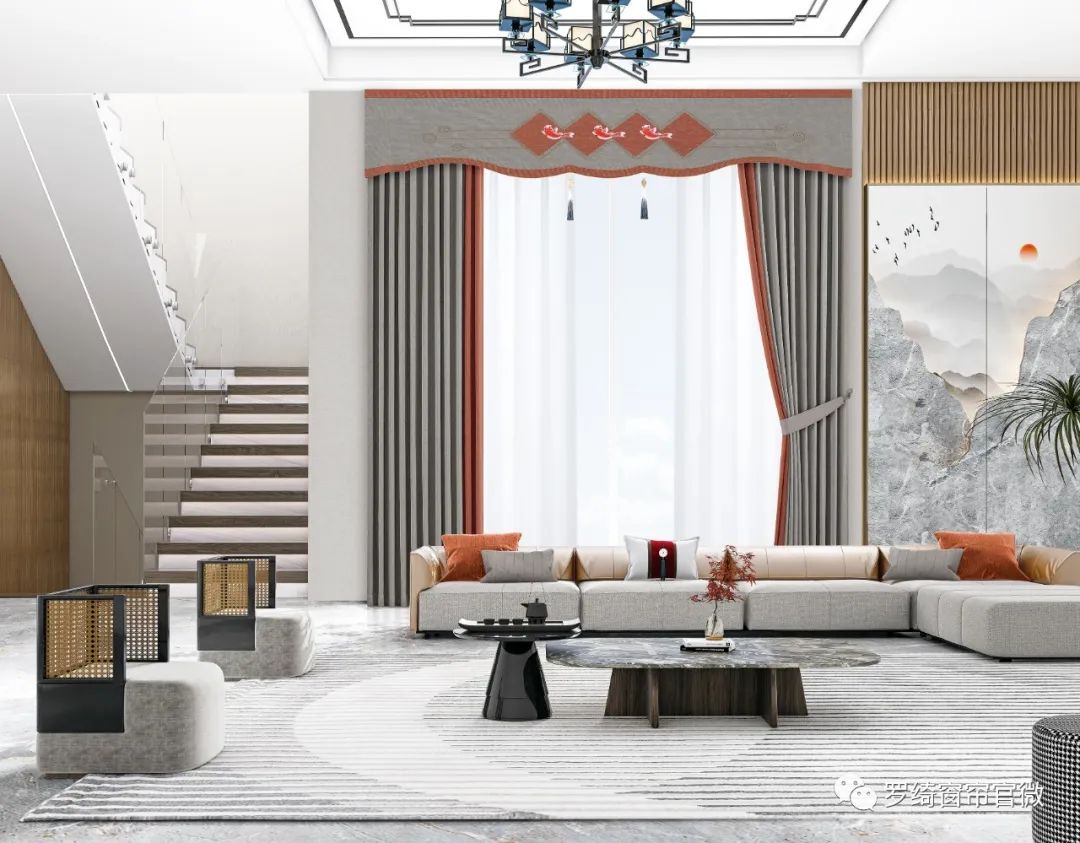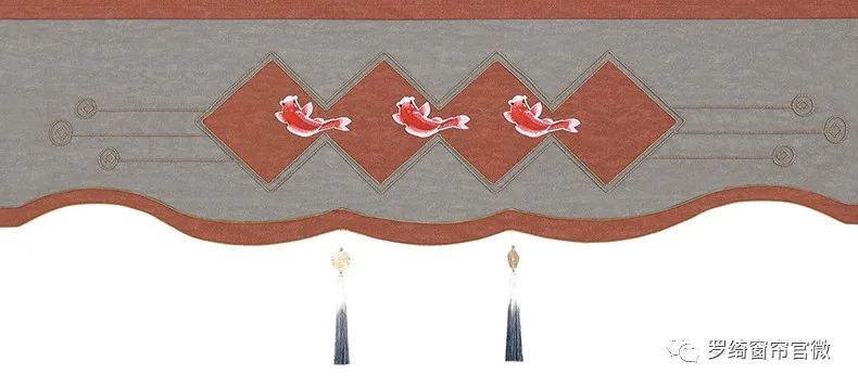 帘头上的锦鲤和金边几何图形为空间注入了灵魂,展现出了不一样的层次感与画面感。